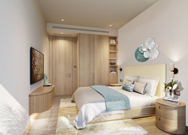 With generous high ceilings of 3.2m, the spacious and air interiors adopted a light coloured timber and beige palette and come with a private garden for a true tropical luxury lifestyle. The showflat’s interior took reference to the colourful flora and natural habitat to highlight features, furniture, art and accessories for colour. The subject of the art & accessories are thoughtfully and playfully curated as various birds – Blue-Tailed Bee Eater, Eurasian Hoopoe, butterflies, local flowers & plants are strategically place in the interior. In addition to the mentioned finishes, a beautiful grey marble and grey beige large format tiles also make the collection of interior finishes in the powder and bathrooms.